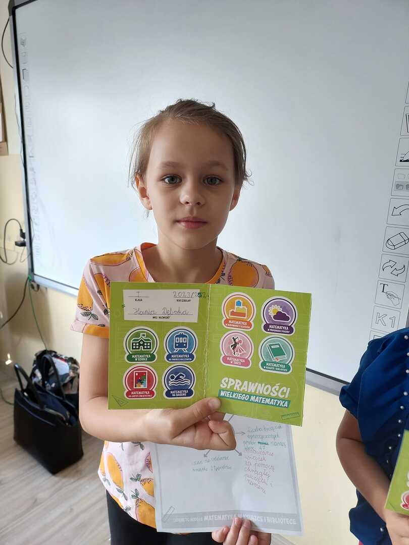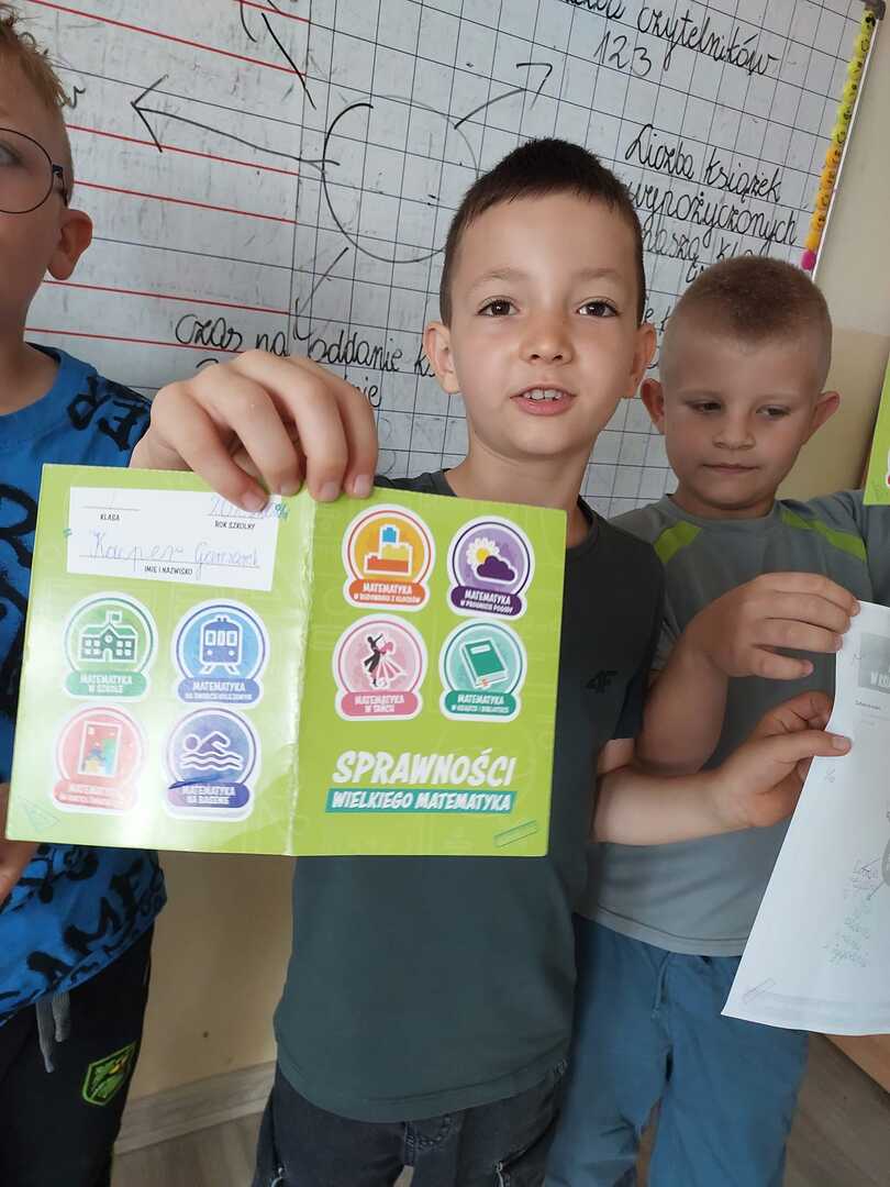 Klasa 1 od października brała udział w projekcie "Natalka i Antek w świecie wielkiej matematyki". Za nami ostatni moduł"Matematyka w książce i w bibliotece". W trakcie zajęć uczniowie zastanawiali się jak matematyka łączy się z książkami i biblioteką. W tym celu odwiedzili bibliotekę szkolną, aby zebrać najważniejsze dane. Nasi uczniowie zrealizowali wszystkie moduły przewidziane w projekcie i w związku z tym otrzymali "Certyfikat Wzorowych Matematyków" Serdecznie im gratulujemy