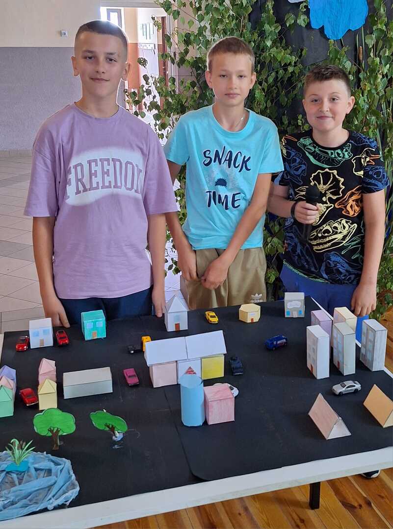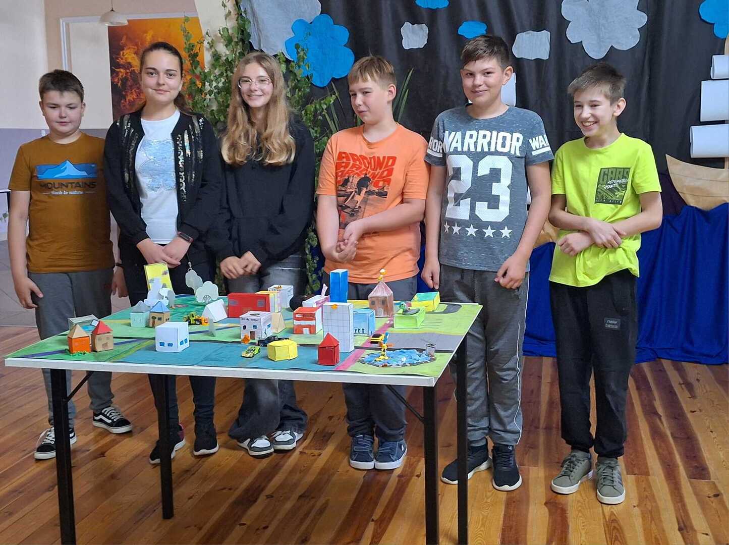Podczas dzisiejszego spotkania Mateusz z klasy 7 zaprosił wszystkich do obejrzenia wykonanej przez siebie prezentacji - pokazu zdjęć, podsumowującej cały rok. Uczniowie kl.5 i kl.6 zaprezentowali wymyślone i wykonane przez siebie makiety miast.