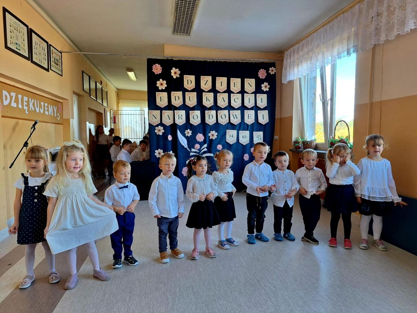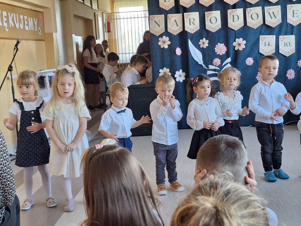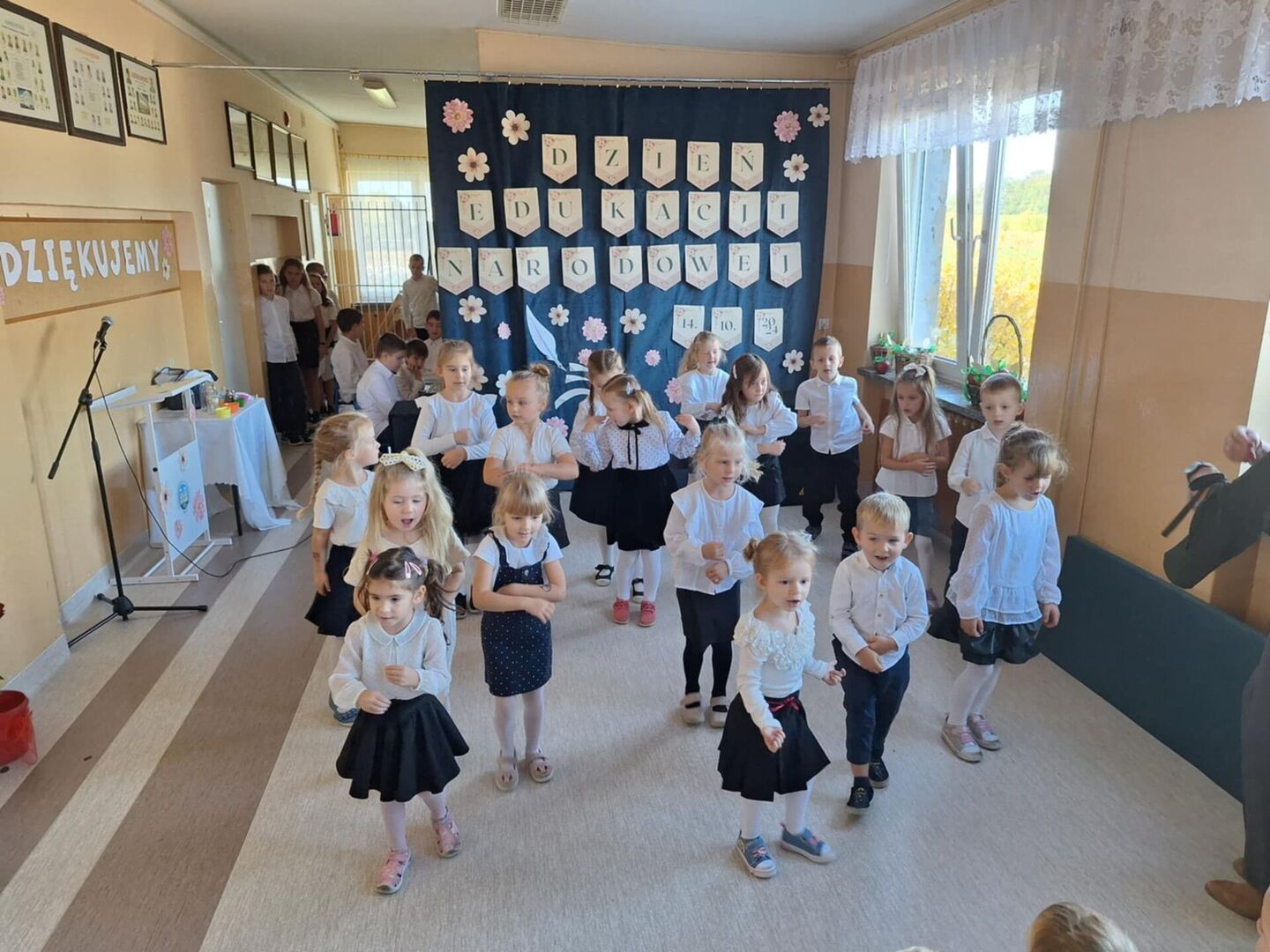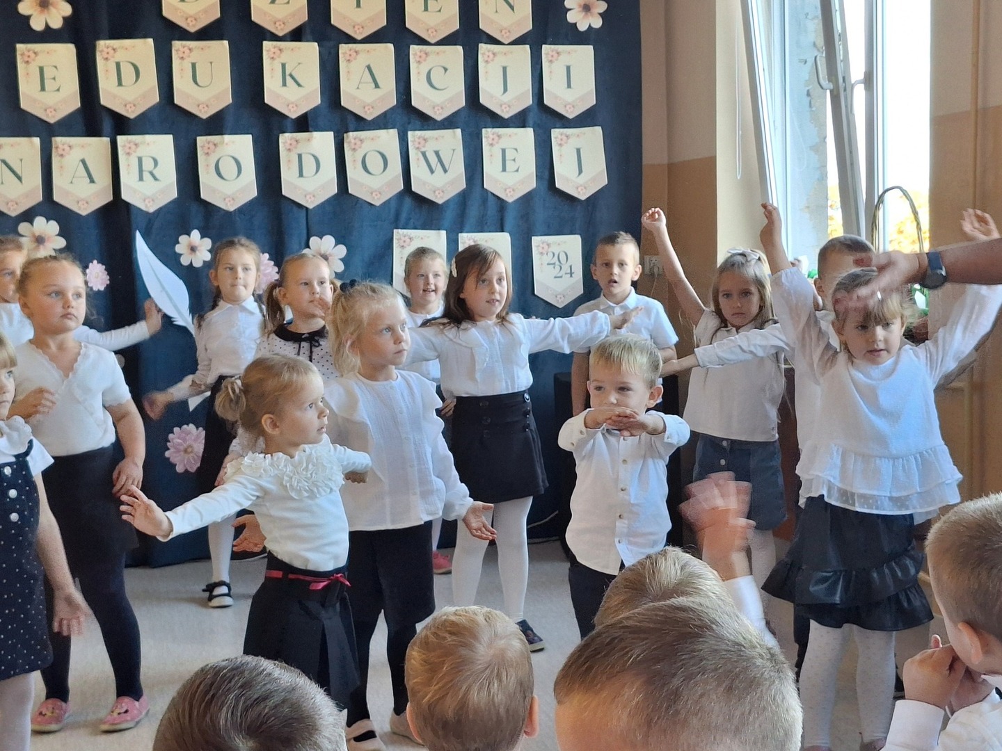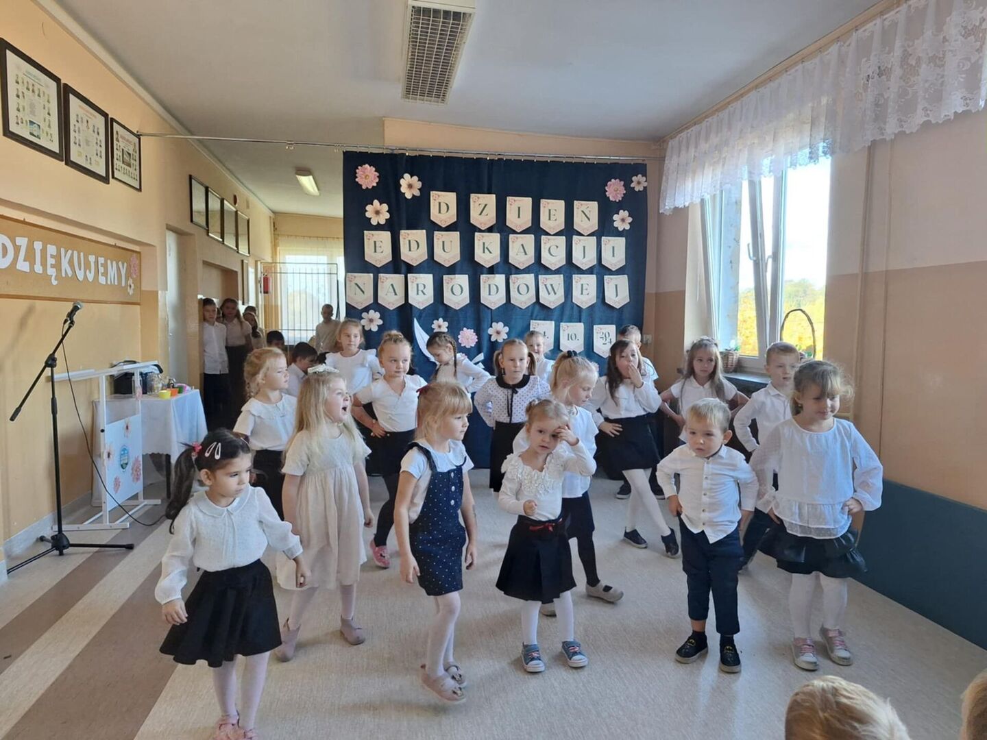 Po gromkim „Sto lat” scenę przejęły dzieci i uczniowie. Były piosenki, taniec i scenka humorystyczna. Była także gala oscarowa z przymrużeniem oka. Młodzi artyści uświetnili ten wyjątkowy dzień w roku szkolnym. Występy przygotowali pod kierunkiem p.Krysi, p.Asi i p.Ewy.