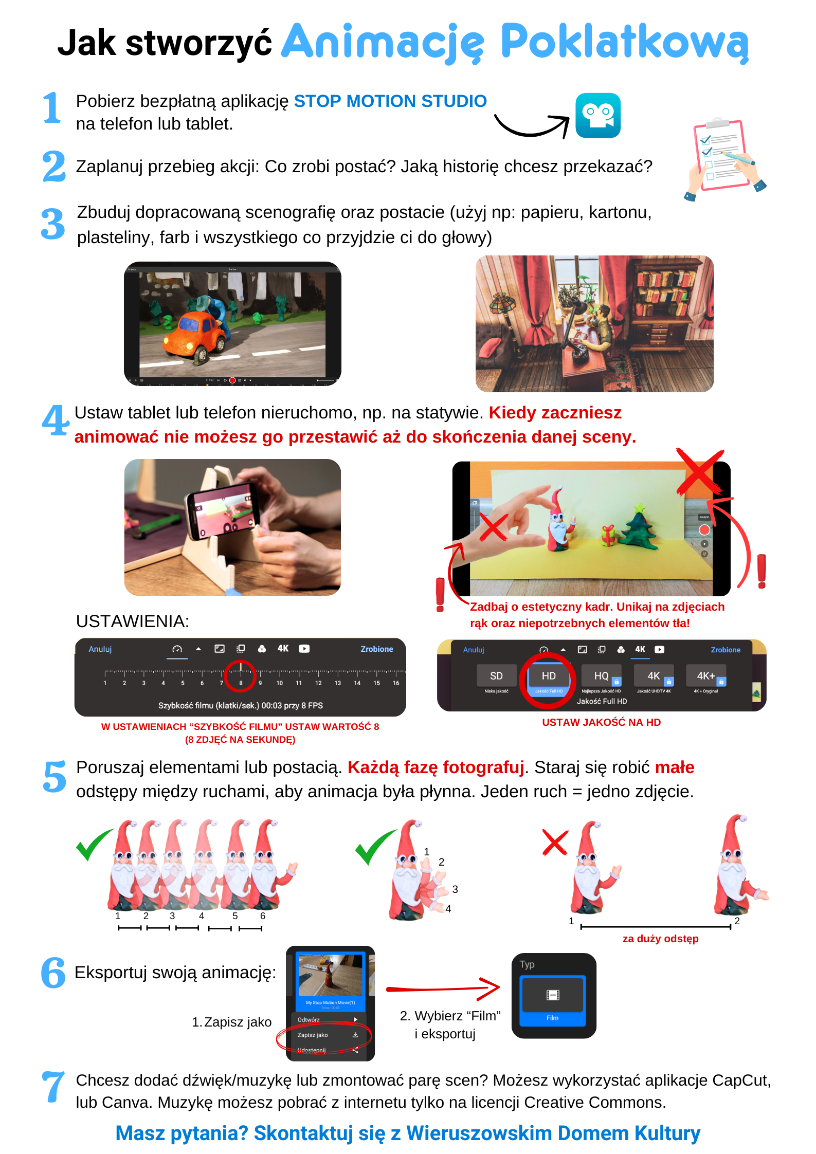 Instrukcja jak stworzyć animacje [1.39 MB] Regulamin Konkursu na ANIMACJa Poklatkowa 2024 [49.50 kB]