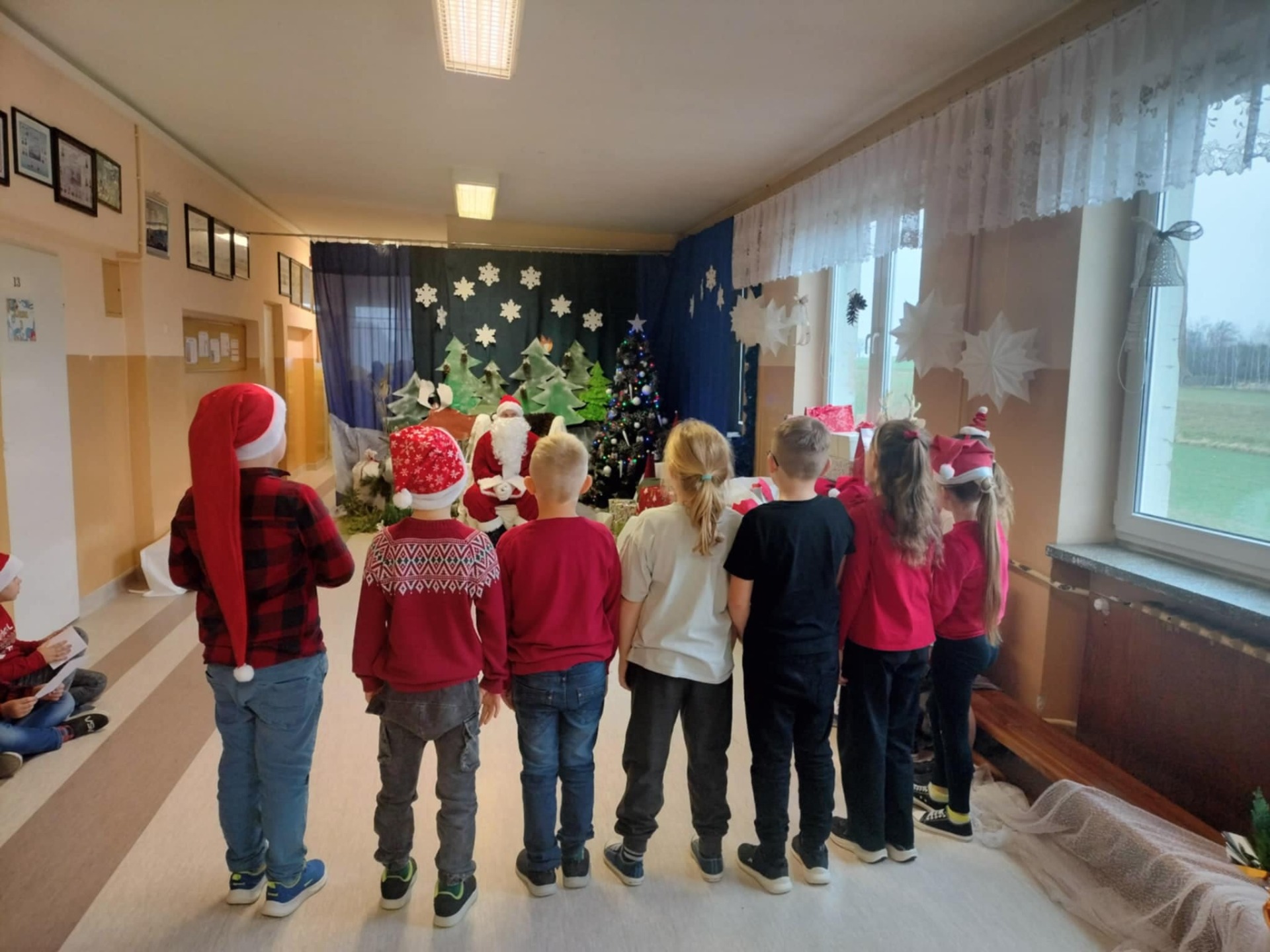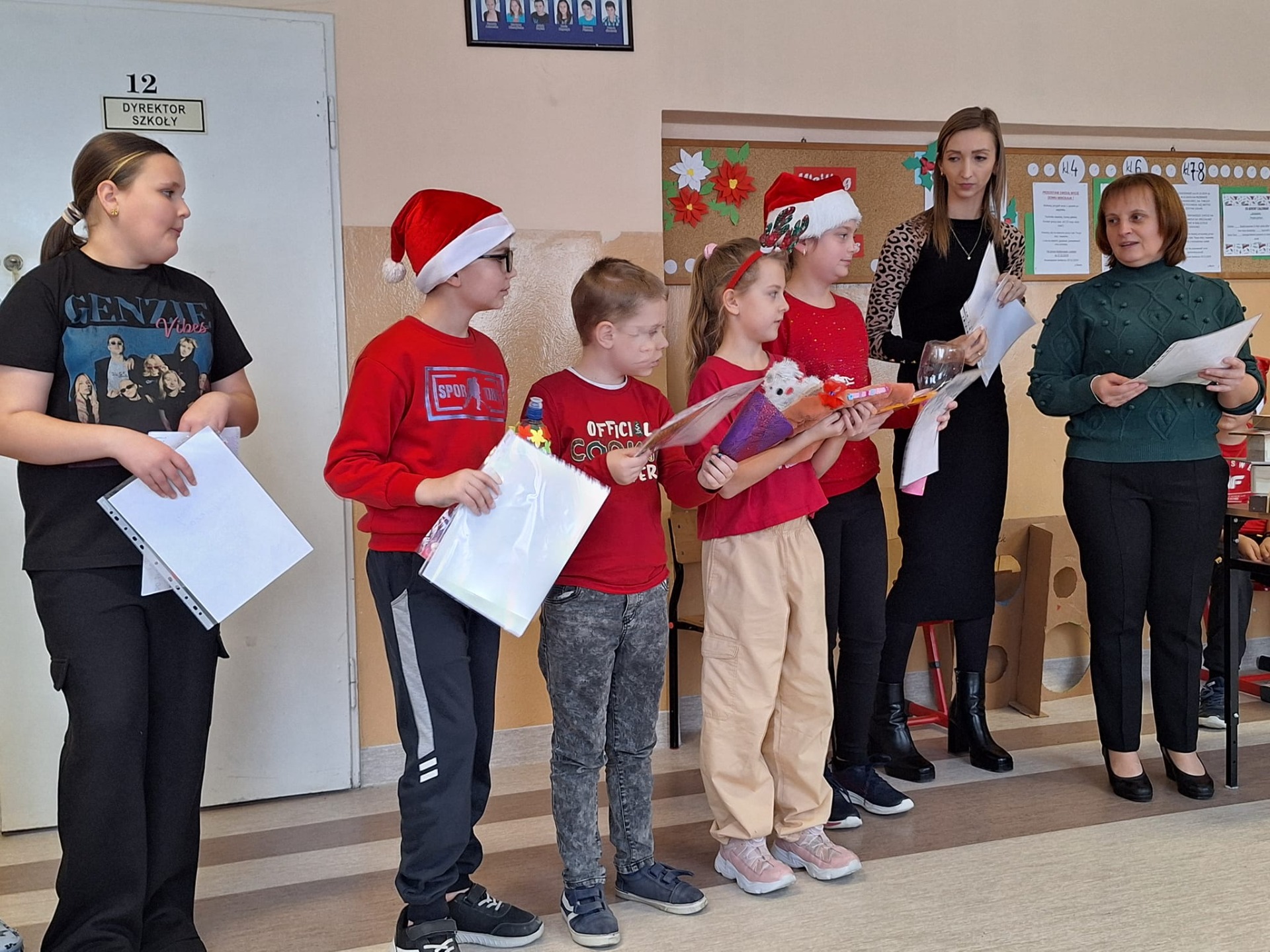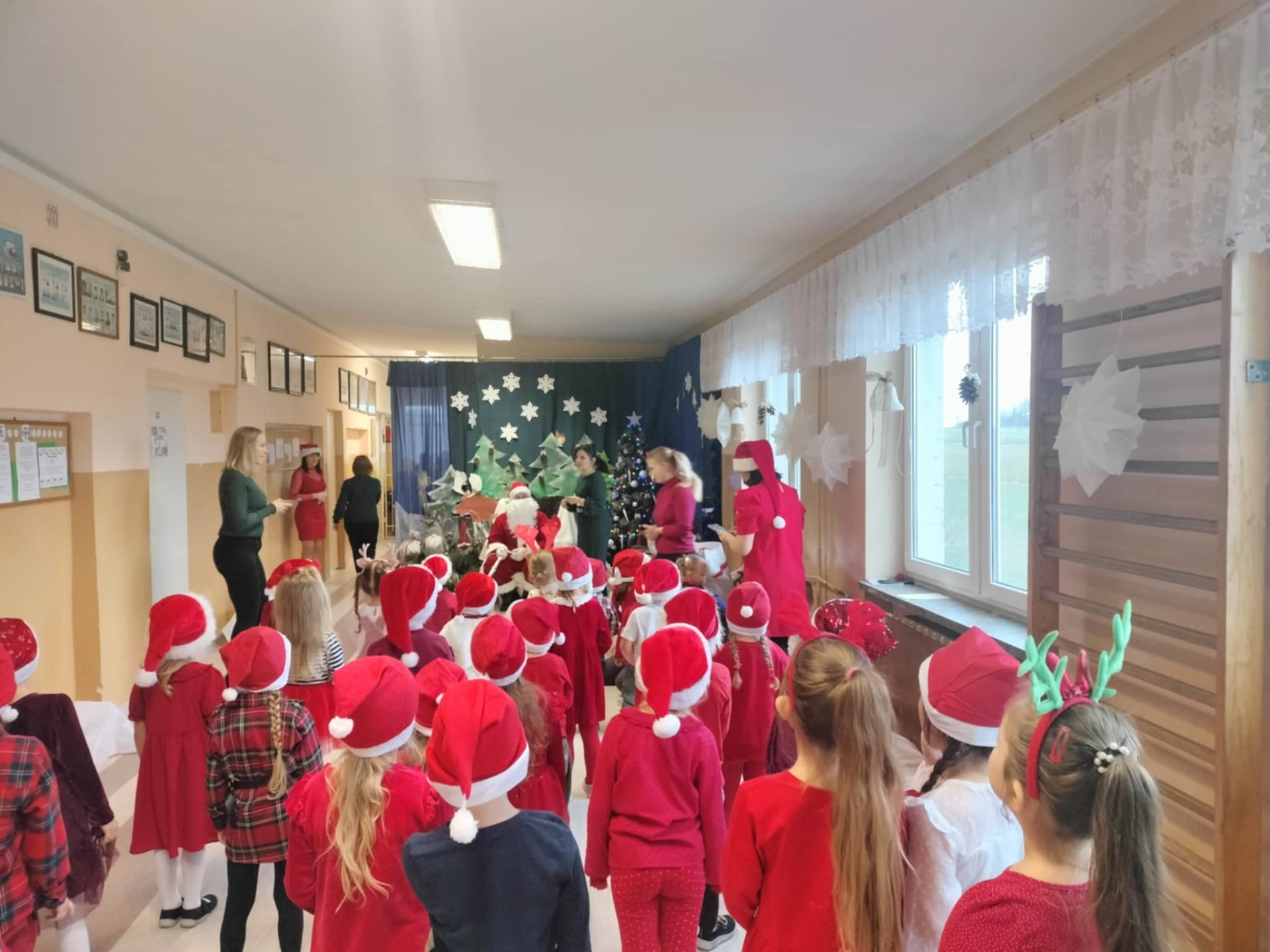 W piątek Mikołaj odwiedził w szkole wszystkich uczniów, przynosząc każdemu uśmiech i podarek. To było bardzo miłe spotkanie. Niestety nie mógł zostać z nami dłużej, bo czekały na niego także inne dzieci.