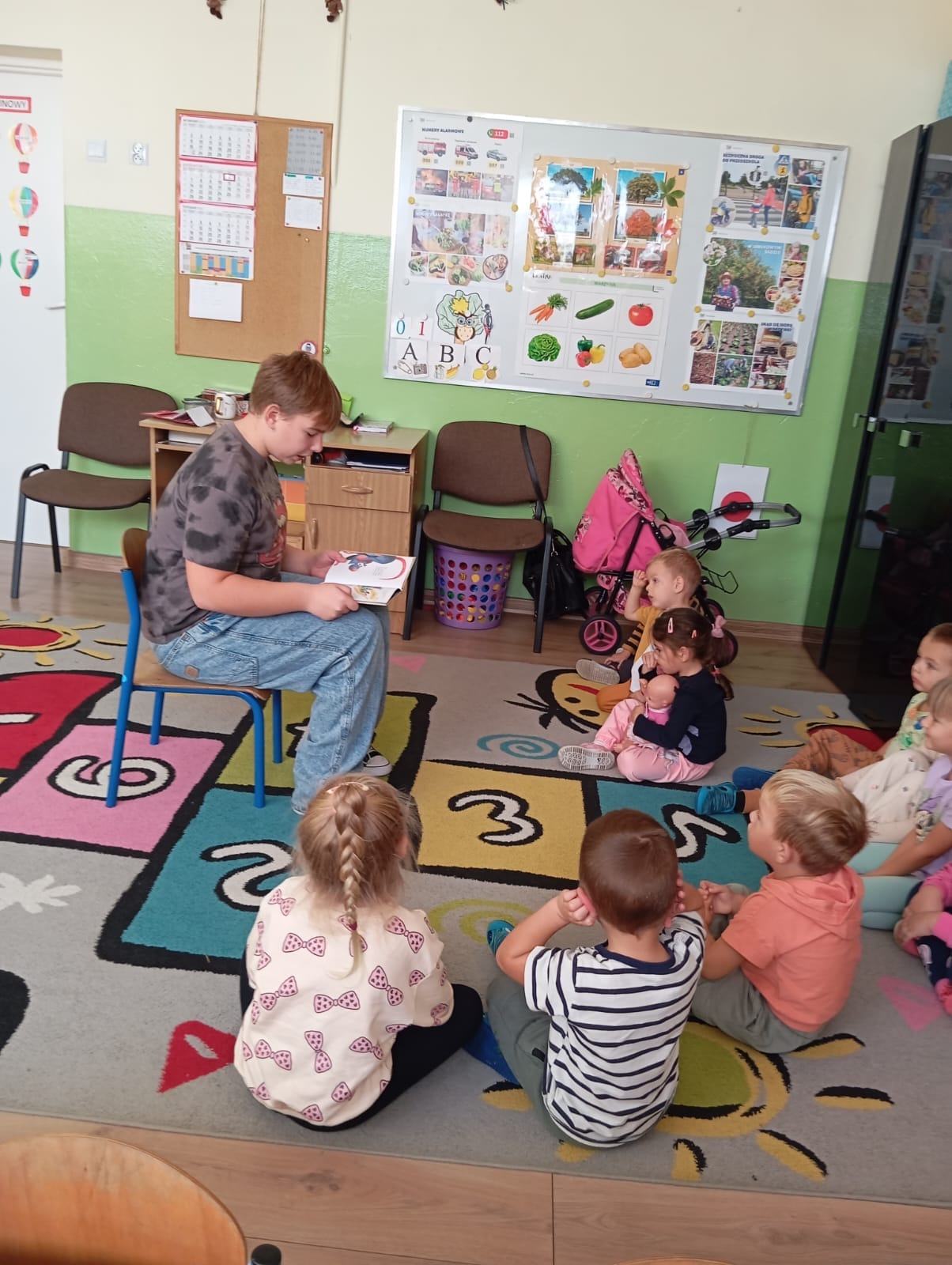 W celu popularyzacji czytelnictwa, w październiku, starsi uczniowie-wolontariusze przeprowadzali akcję głośnego czytania dzieciom przedszkolnym, prezentując im wybrane nowości.