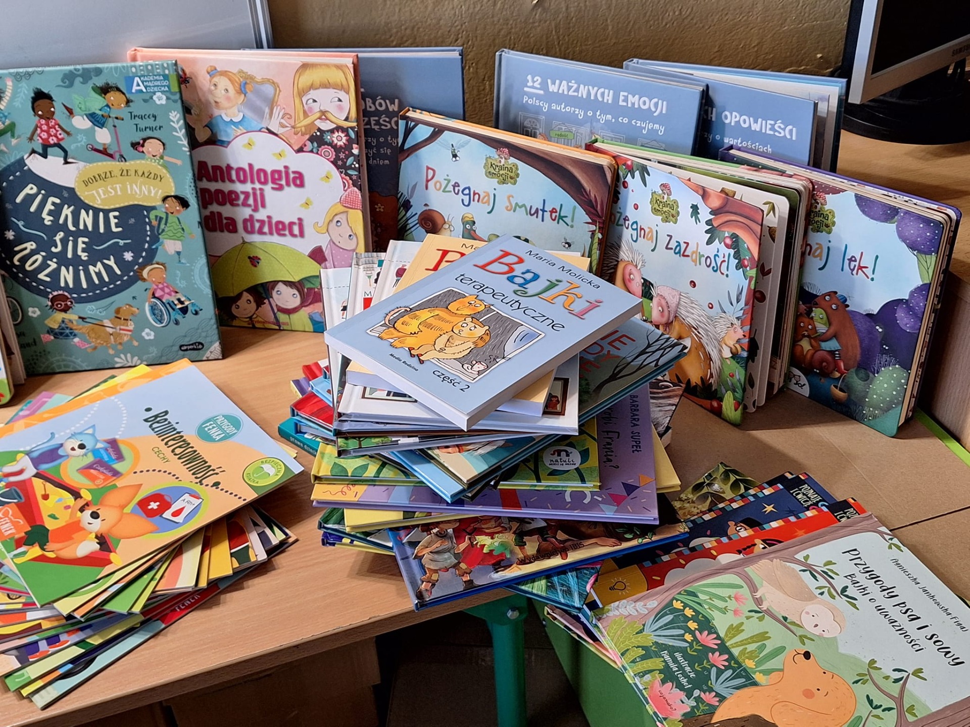 W ramach programu otrzymaliśmy dofinansowanie na zakup książek oraz na realizację działań promujących czytelnictwo. Zakupiliśmy 113 pozycji dla dzieci – bajki, wiersze, opowiadania, legendy. Wśród nich książeczki o różnych emocjach, książeczki wspomagające naukę czytania czy książeczki sensoryczne.