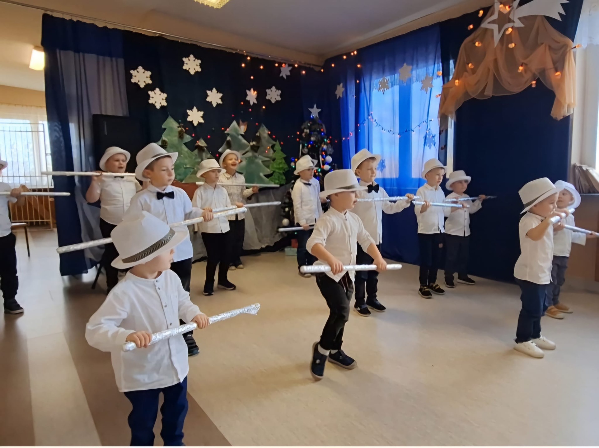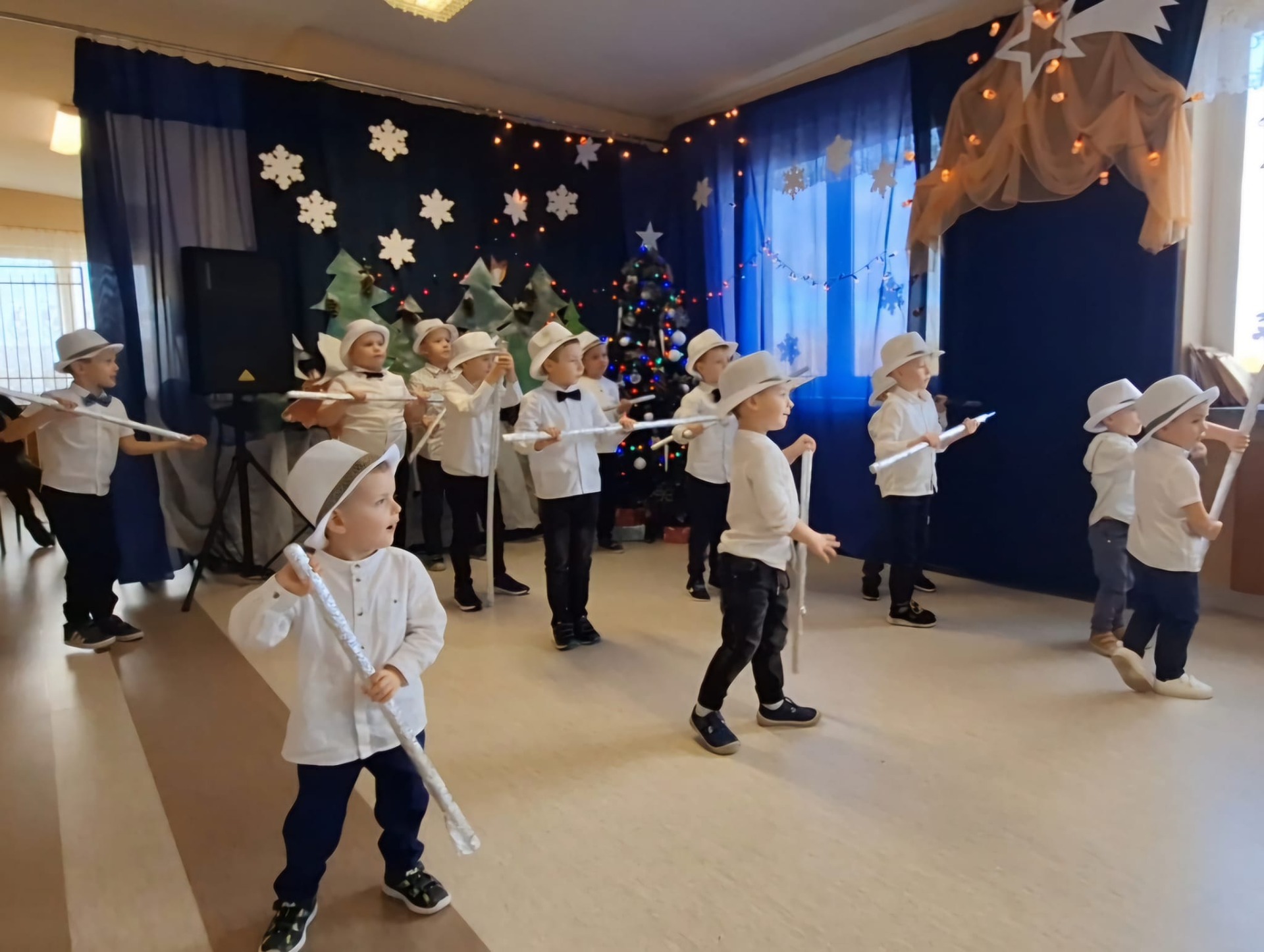 Na zakończenie dnia, po klasowych spotkaniach opłatkowych, ponownie wszyscy zebrali się na górnym korytarzu. Rozstrzygnięte zostały świąteczne konkursy z języka angielskiego oraz wręczone dyplomy i upominki. Przedszkolaki wraz ze swoimi paniami przygotowały dla wszystkich zebranych prezent - tańce w zimowo-świątecznych aranżacjach. Następnie uczniowie poszczególnych klas przedstawili i krótko opowiedzieli o wybranych świątecznych symbolach. Spotkanie zakończyło się wspólnym śpiewaniem kolęd i życzeniami