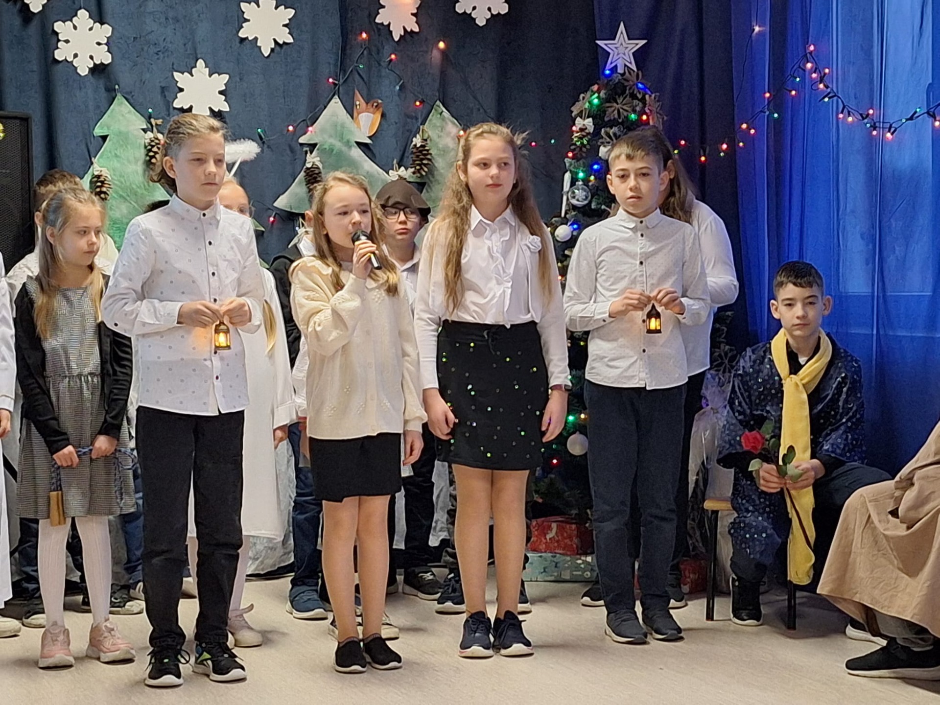 Z okazji nadchodzących świąt Bożego Narodzenia w szkole odbyło sie dziś rano uroczyste przedstawienie - Jasełka z Małym Księciem. Opowiadały o dorastaniu do miłości i odpowiedzialności za drugiego człowieka. Zachęciły do reflekcsji nad naszym życiem i znaczeniem świąt Bożego Narodzenia.