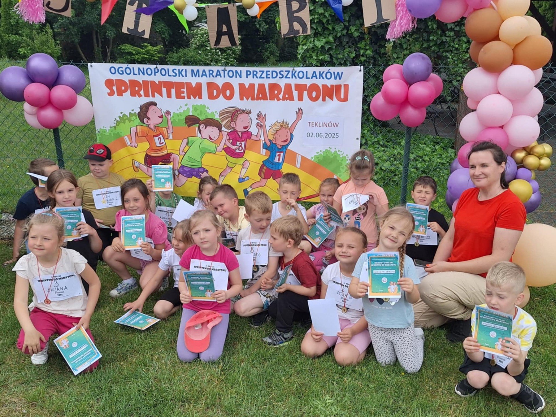 Nasze przedszkolaki przystąpiły do Ogólnopolskiego Maratonu Przedszkolaków pt.”Sprintem do maratonu”. Wszyscy uczniowie bardzo im kibicowali. Medale przedszkolakom przyjechał wręczyć gość specjalny - p.Andrzej Kuch- dwukrotny Mistrz Polski w skoku w dal.