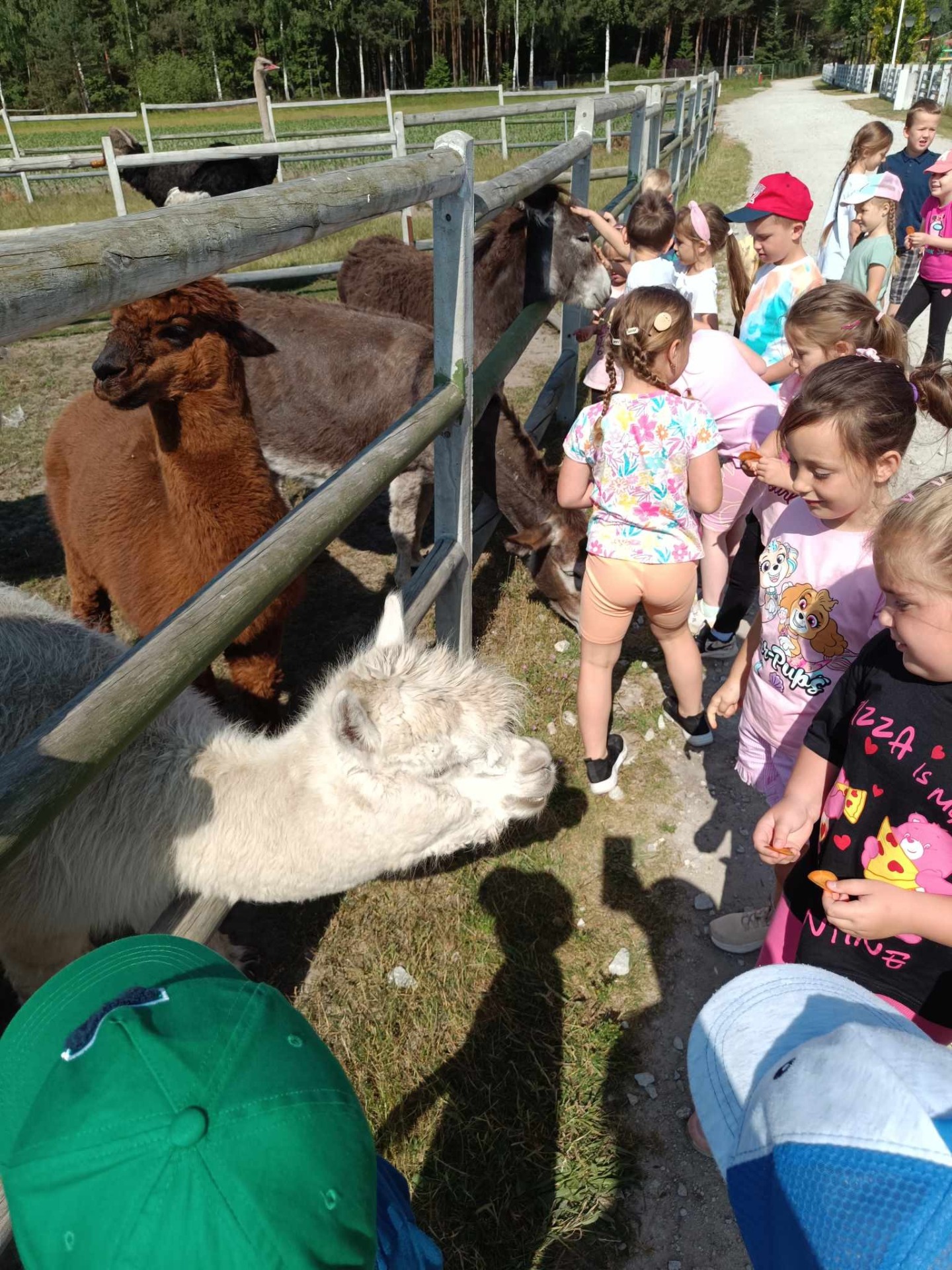Niedawno 5 i 6 latki wybrały się na wycieczkę do gospodarstwa agroturystycznego Pod Dębem. Na miejscu czekało na dzieci wiele atrakcji: spacer po mini zoo, karmienie zwierząt, przejazd autem typu melex, zabawy na placu zabaw. Pogoda dopisala. Wszystkie atrakcje dostarczyły dzieciom mnóstwo radości i wrażeń, a czas upłynął w niesamowitej atmosferze w otoczeniu przyrody.