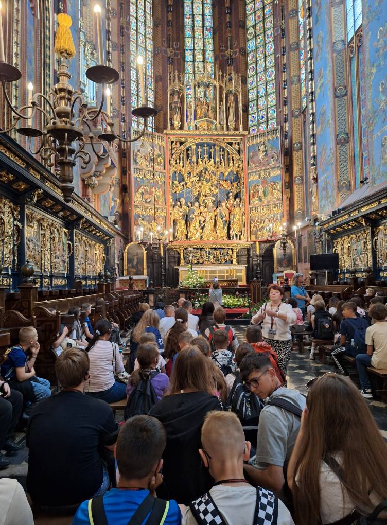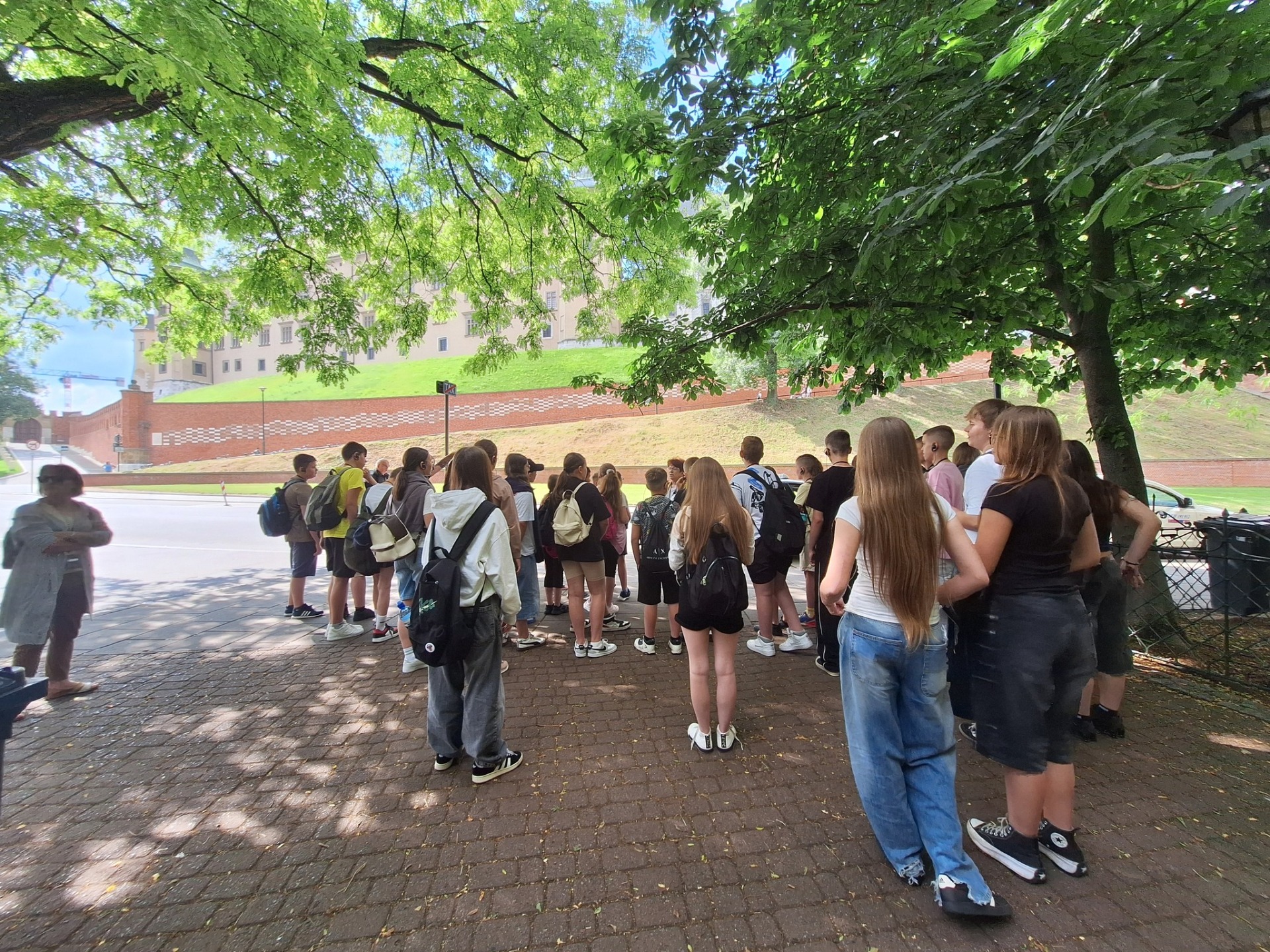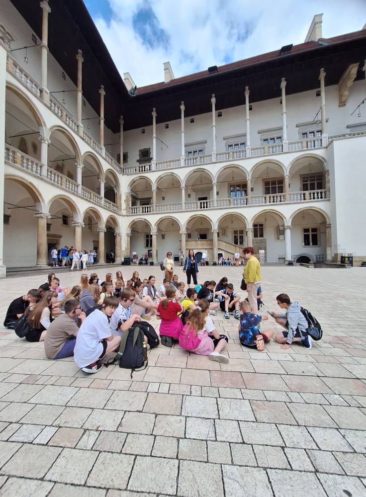 W pierwszych dwóch dniach zwiedziliśmy krakowski rynek wraz z trasą podziemną, podziwialiśmy przepiękne malowidła i ołtarz w Kościele Mariackim, zobaczyliśmy Sukiennice, Barbakan, Bramę Floriańską, Collegium Maius Uniwersytetu Jagiellońskiego, czy Kościół św. Franciszka 😉. Wypatrzyliśmy także kurię arcybiskupią oraz Kopiec Kościuszki. Zwiedziliśmy Wawel – Katedrę Wawelską wraz z kaplicami i kryptami gdzie zobaczyliśmy groby polskich królów a także innych ważnych postaci. Weszliśmy na wieżę z Dzwonem Zygmunta i zgodnie z legendą każdy z nas myśląc sobie życzenie dotknął jego serca z nadzieją, że życzenie się kiedyś spełni. Spacerowaliśmy po Kazimierzu zwiedzając Dzielnicę Żydowską. Nie zabrakło także spotkania ze Smokiem Wawelskim. Siły regenerowaliśmy na krakowskim rynku oraz na Wawelskim Dziedzińcu.
