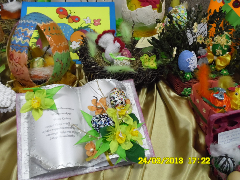 Warunkiem uczestnictwa w konkursie wielkanocnym było wykonanie ozdoby wielkanocnej dowolnej wielkości, w dowolnej technice, z wykorzystaniem różnorodnych materiałów (z wyłączeniem gotowych, zakupionych elementów).