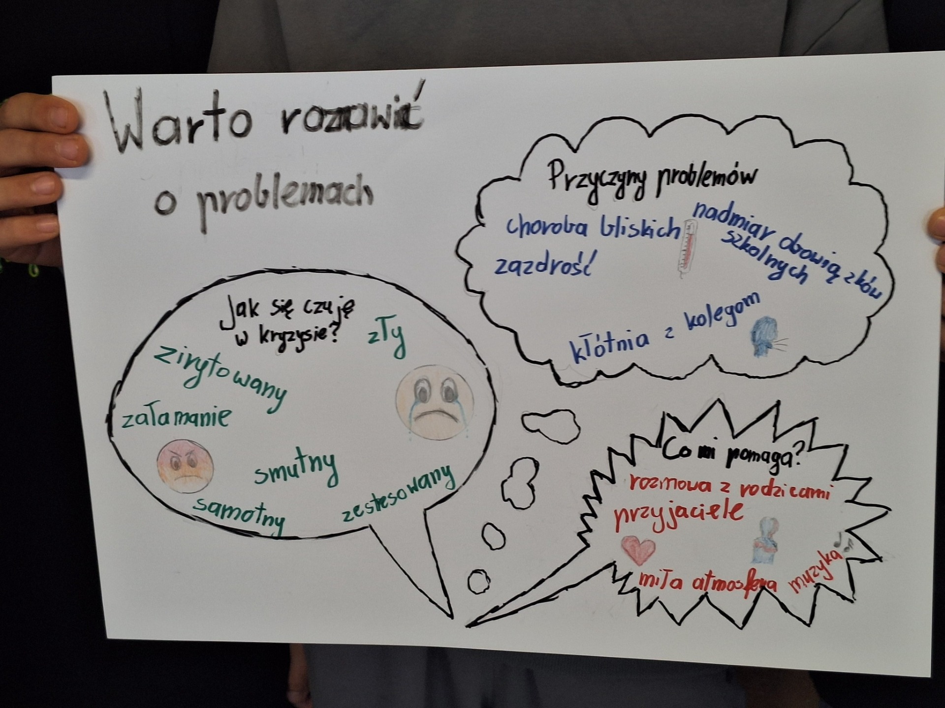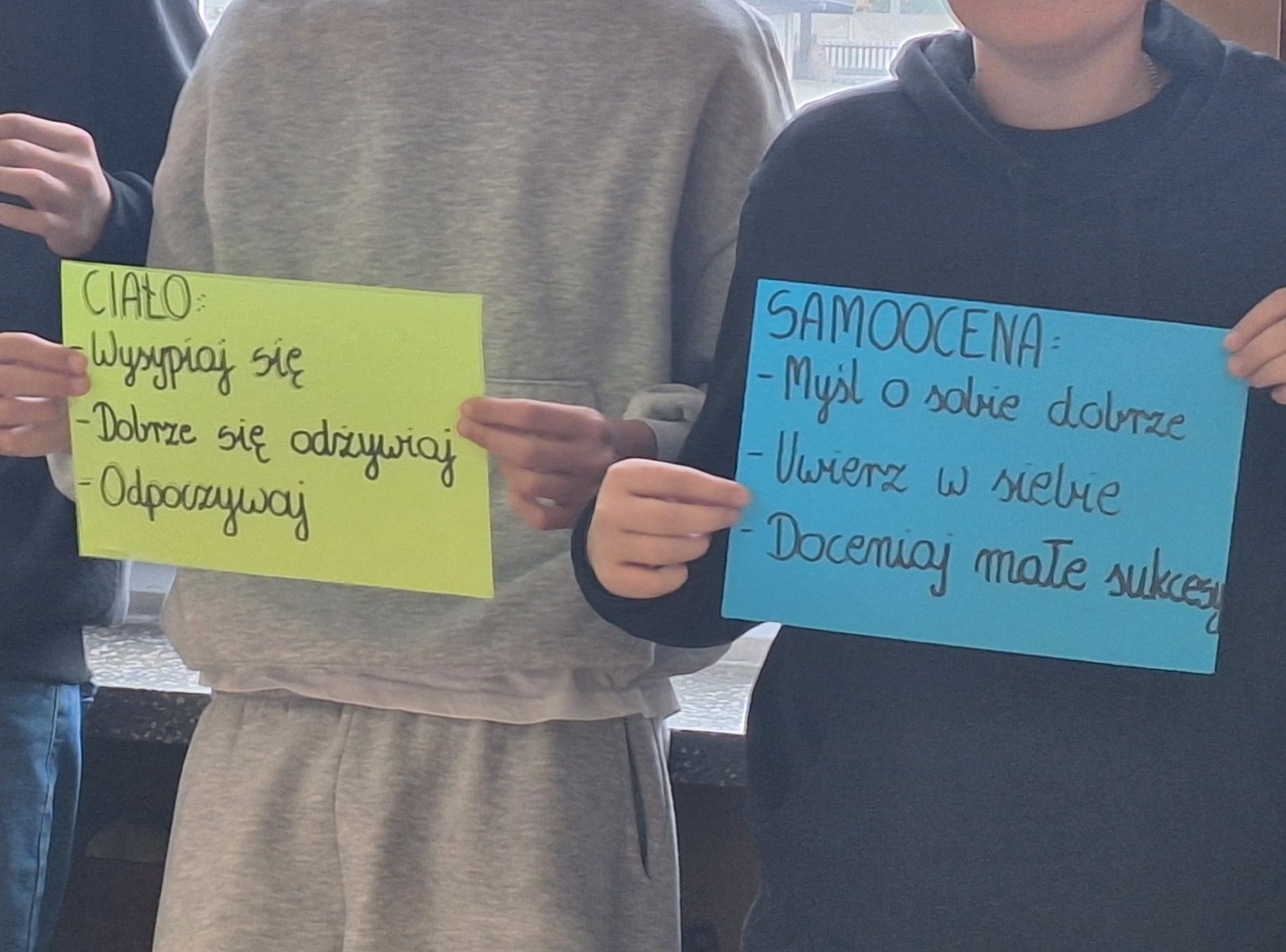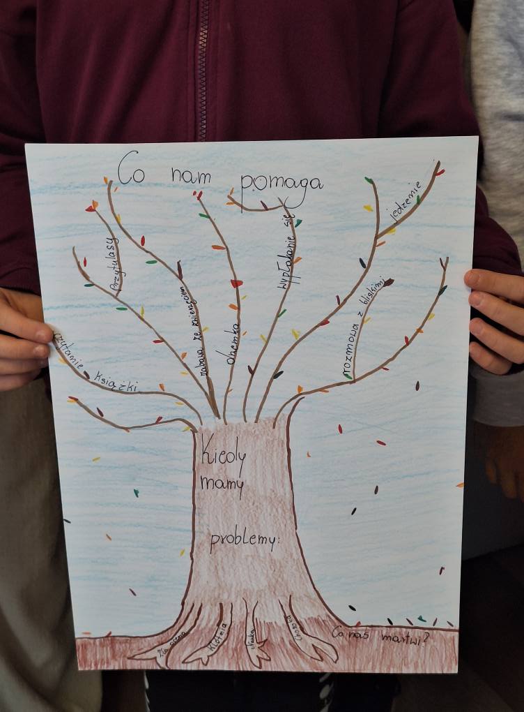 Po zakończonych zajęciach na wspólnym spotkaniu podzieliliśmy się wypracowanymi radami, z czego powstała gazetka dobrych rad.