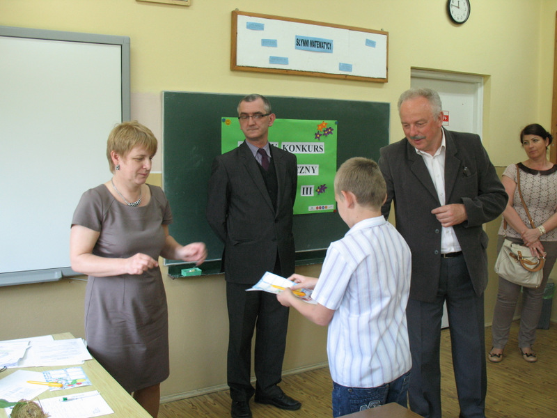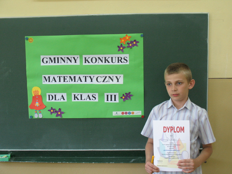 8 maja 2013 r. Cezary Brylak reprezentował naszą szkołę w VIII Gminnym Konkursie Matematycznym, którego uczestnikami byli uczniowie klas trzecich z terenu gminy Wieruszów. Organizatorem konkursu odbywającego się pod patronatem burmistrza Wieruszowa była Szkoła Podstawowa w Wyszanowie. Do konkursu przystąpiło 8 dziesięciolatków – reprezentantów klas trzecich z 5 szkół z gminy Wieruszów.