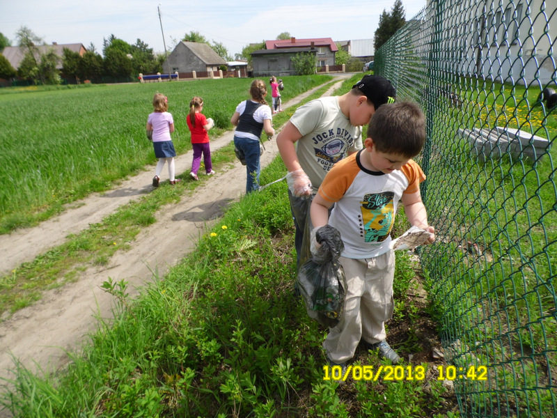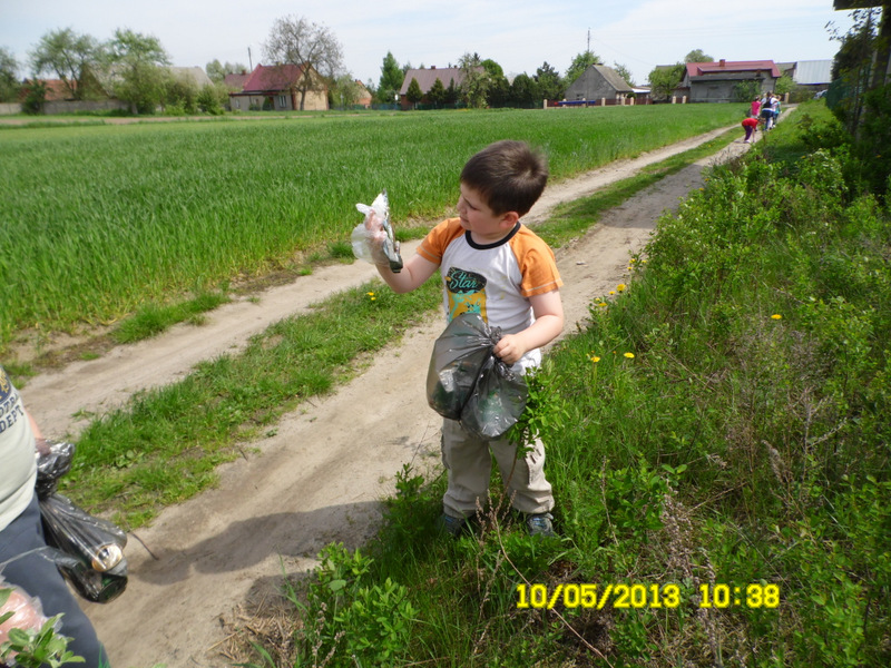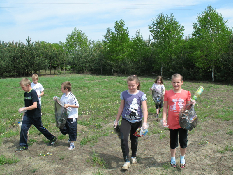 Akcja „Wysprzątajmy Powiat Wieruszowski na wiosnę” zachęciła uczniów i nauczycieli naszej szkoły do działania proekologicznego zainicjowanego przez wieruszowskie starostwo i zorganizowanego przy udziale Urzędu Miejskiego. Piękna słoneczna pogoda jeszcze bardziej zachęciła do zainteresowania się środowiskiem, w którym żyją, do wyjścia i zobaczenia, co dzieje się w przyrodzie - chociaż w miejscach znajdujących się w niedalekiej odległości od szkoły. Akcją sprzątania objęto główną drogę miejscowości, Teklinów-Nawrotów II oraz tereny przylegające najbliżej budynku szkolnego. Uczestnicy biorący udział w akcji, tj. uczniowie z klas I-VI sprzątali wyznaczone tereny. Wcześniej zostaliśmy zaopatrzeni w worki na śmieci oraz rękawiczki ochronne. Wędrując wśród pól i łąk dziewczynki z klas młodszych zauważyły, że nie można w pełni zachwycić się widokiem kwitnących wiosennych kwiatów: mleczy, stokrotek, bratków rosnących wśród wyrzuconych worków, plastikowych pojemników po paliwie, butelek, puszek po napojach, itp. Chłopcy, nawet ci najmłodsi dostrzegli, że szklane butelki porzucone w lesie przez dorosłych stwarzają zagrożenie pożarowe. Jakże miło było odpocząć na brzegu stawu, posłuchać rechotania żab…szkoda tylko, że tam też towarzyszyły nam śmieci. To już druga taka akcja, z której po oczyszczeniu przydrożnych rowów, poboczy dróg oraz pobliskich lasów wracamy - niestety z pełnymi workami. Kiedy to się zmieni? Głęboko wierzymy w to, że już wkrótce, kiedy troska o środowisko będzie sprawą nadrzędną dla każdego człowieka.