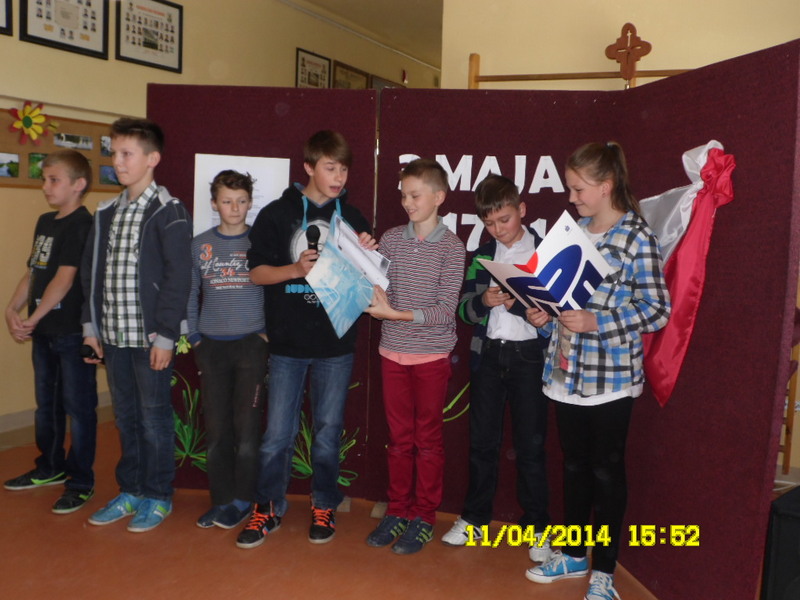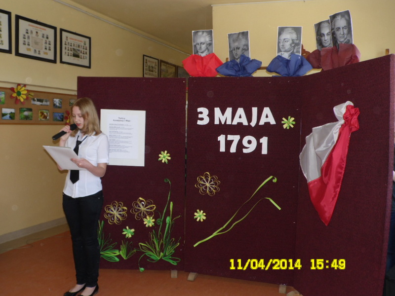 Tegoroczne obchody Święta 3 Maja przygotowali uczniowie klasy 5 pod opieką p. Renaty Nawrockiej. To jedno z ważniejszych wydarzeń w historii Polski uczniowie upamiętnili w formie teatru kukiełkowego. Wydarzenia towarzszące uchwaleniu pierwszej konstytucji w Europie i drugiej na Świecie, przypomnieli dzięki ciekawym, rymowanym tekstom, nawiązującym do rozmów toczonych w Sejmie Czteroletnim. Na zakończenie, w hołdzie twórcom konstytucji, wszyscy odśpiewali pieśń ,, Mazurek Trzeciego Maja” .